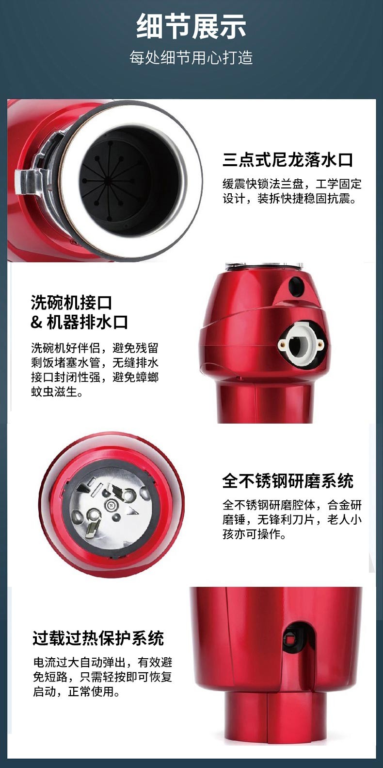 不堵:粉碎更细小,不堵下水道;